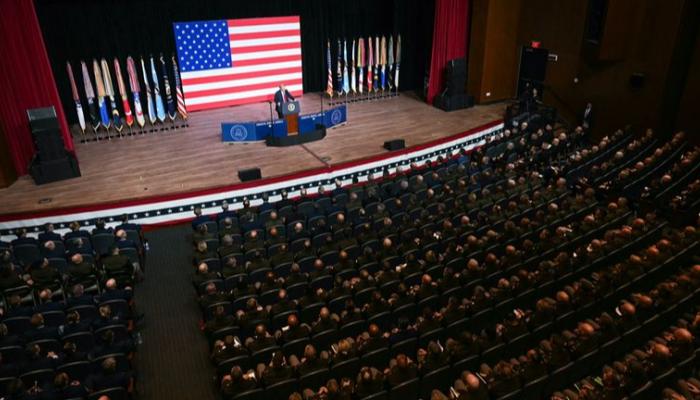 وأدلى وترامب بالتصريح خلال خطاب ألقاه في اجتماع غير اعتيادي أمام جمع من كبار الجنرالات والأدميرالات في قاعدة كوانتيكو بولاية فرجينيا، غداة إعلانه خطة لإنهاء الحرب في غزة.
