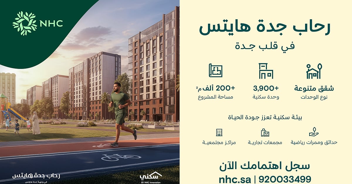 أعلنت NHC عن إتاحة تسجيل الاهتمام في مشروع “رحاب جدة هايتس”، الواقع في قلب وجهة جدة هايتس، على مساحة تتجاوز 200 ألف متر مربع، يضم أكثر من 3,900 شقة سكنية بتصاميم حديثة ومساحات متنوعة.
