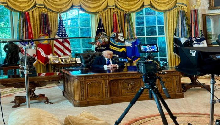 وبُعيد نشر بيان حركة حماس، نشرت المتحدثة باسم البيت الأبيض كارولين ليفيت، صورة للرئيس الأمريكي وهو يتحدث أمام كاميرا، معلقة عليها بقولها: خلف الكواليس في المكتب البيضاوي: الرئيس ترامب يرد على قبول حماس لخطته للسلام.. تابعونا».