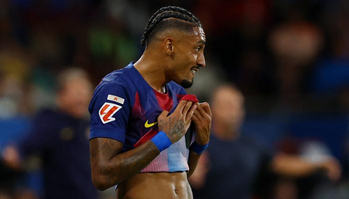 لفت البرازيلي رافينيا، نجم برشلونة، الأنظار رغم غيابه عن مباراة فريقه أمام إشبيلية ببطولة الدوري الإسباني.