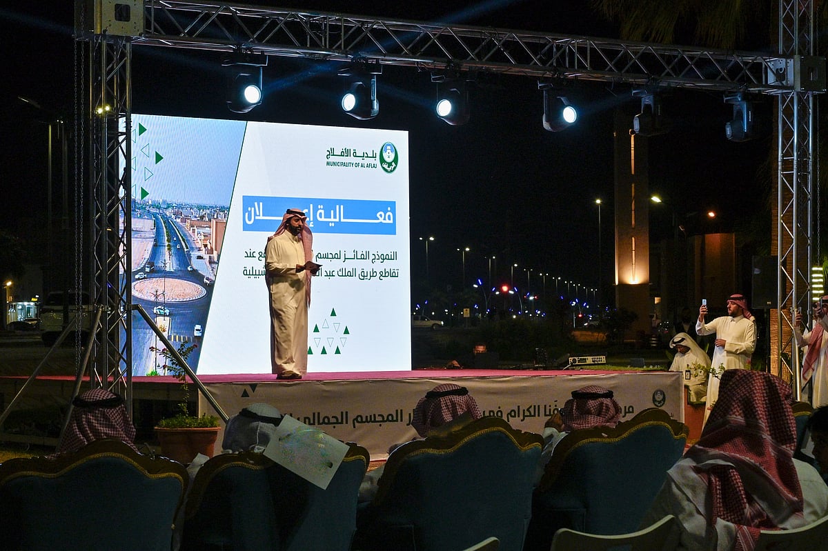 نظّمت بلدية الأفلاج مساء أمس فعالية اختيار المجسّم الجديد لأحد الميادين الرئيسة بالمحافظة، وسط حضور محافظ الأفلاج المكلف عبدالله المطيري، ورئيس بلدية الأفلاج المهندس عبدالله المعدي، وعدد من رؤساء البلديات وجمع من الأهالي.