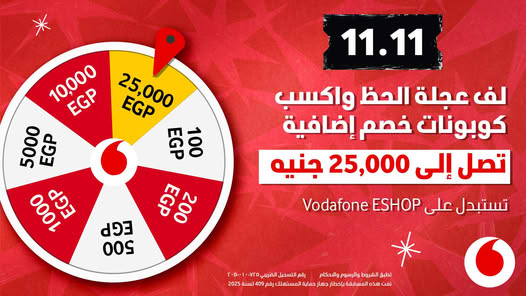 اللي نفسك فيه اشتريه، لف عجلة الحظ على Vodafone eShop واكسب كوبونات خصم إضافية لحد 25,000 جنيه مع عرض عجلة الحظ