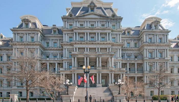 ويتميّز مبنى آيزنهاور، الذي اكتمل بناؤه عام 1888، بطرازه المعماري المستوحى من الإمبراطورية الفرنسية الثانية. ومنذ ذلك الحين، أثار جدلًا واسعًا بين المهتمين بالعمارة، حتى أن الكاتب مارك توين وصفه ذات يوم بأنه «أقبح مبنى في أميركا». وفي نهاية القرن الماضي، أعيدت تسميته تكريمًا للرئيس دوايت أيزنهاور.