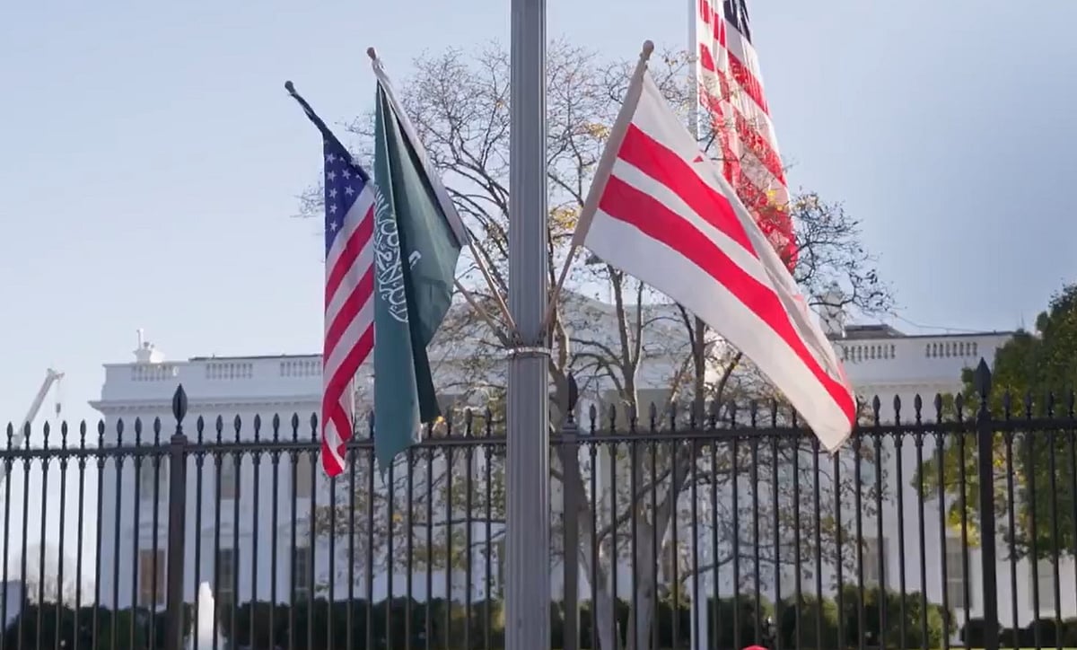 شاهد.. الأعلام السعودية تزين ساحة البيت الأبيض استعداداً لاستقبال ولي العهد