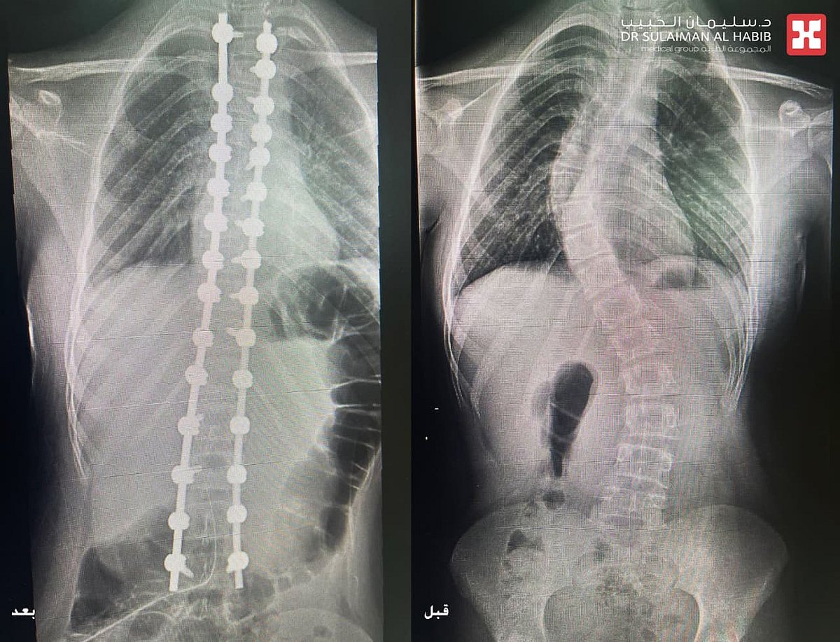 أجرى مجمع الدكتور سليمان الحبيب الطبي بالعليا، عملية جراحية دقيقة لإنهاء معاناة فتاة تبلغ من العمر 13 عاماً، تعاني من إنحناء وجنف مضاعف بالعمود الفقري تبلغ زاويته 70 و45 درجة على التوالي، وذلك عن طريق استخدام تقنيات الذكاء الاصطناعي (AI) والطباعة ثلاثية الأبعاد (3D). ذكر ذلك الدكتور عوض العوض استشاري جراحة العظام والعمود الفقري، رئيس الفريق الطبي المعالج الحاصل على الزمالة الأمريكية والسويدية.