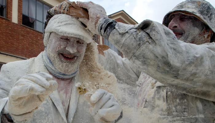 وامتلأت شوارع البلدة بالمشاركين الذين استخدموا البيض والدقيق في مهاجمة بعضهم البعض، ضمن فعاليات مهرجان “إلس إنفاريناتس” التقليدي، الذي يُقام سنويًا ويُعد من أبرز المناسبات الشعبية في المنطقة.