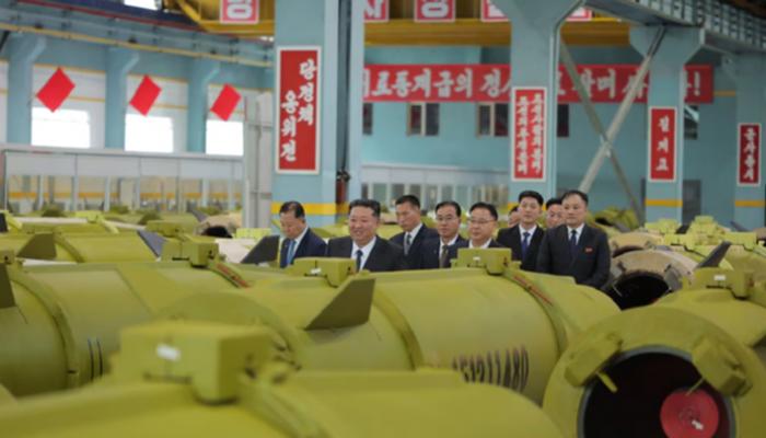 وأظهرت صور بثتها وسائل الإعلام الرسمية كيم جونغ أون واقفًا إلى جانب أنظمة الصواريخ الجديدة الضخمة داخل مصنع واسع، تزين جدرانه شعارات دعائية.