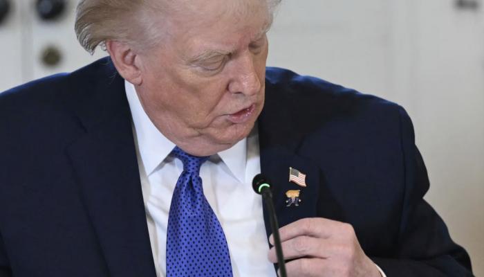 دبوس على طية صدر سترة دونالد ترامب أثناء حديثه في اجتماع بالقاعة الشرقية بالبيت الأبيض يخطف الأضواء ويفجر التكهنات.
